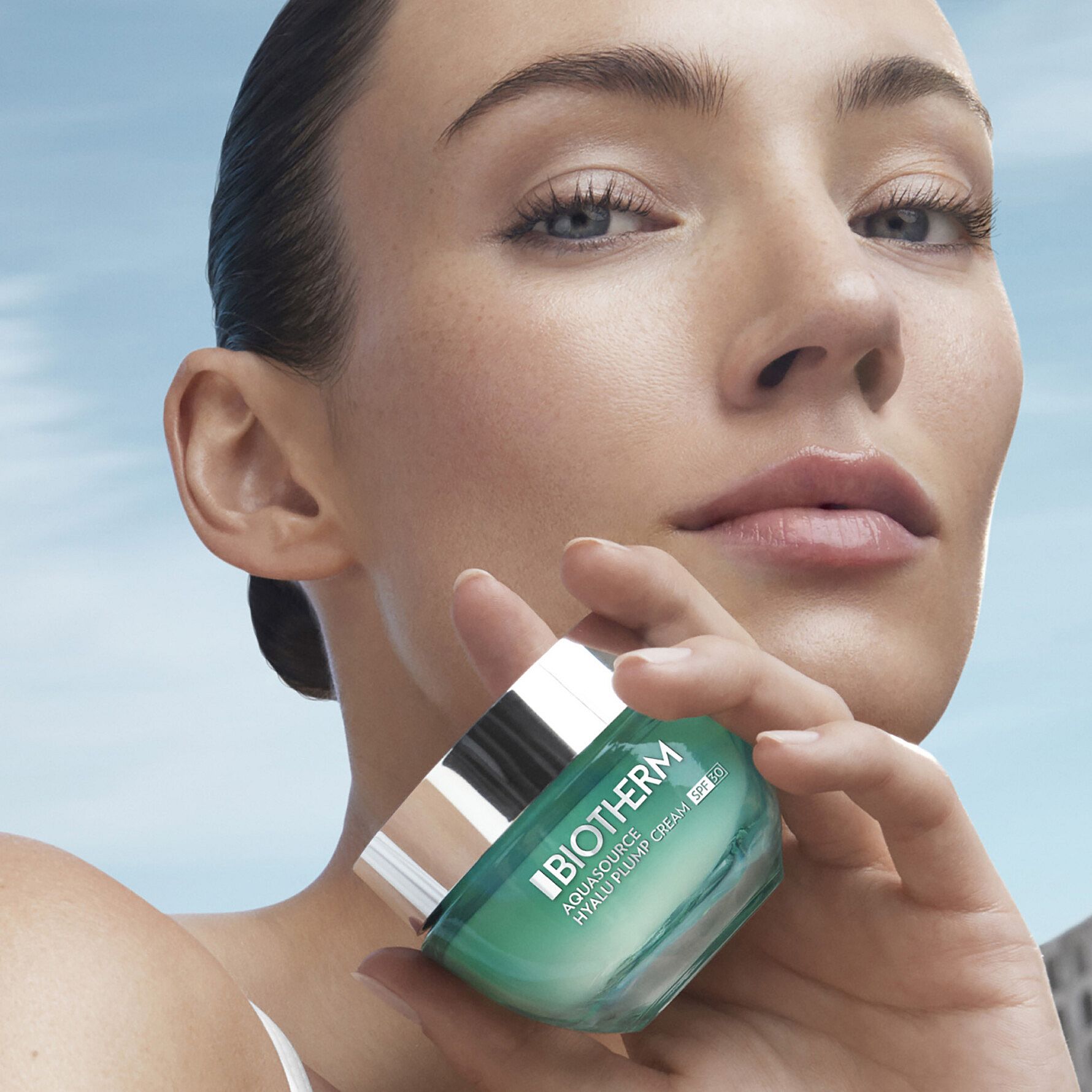 Aquasource Hyalu Plump Cream SPF30 er både en fugtgivende og beskyttende dagcreme til alle hudtyper, også sensitiv hud.
