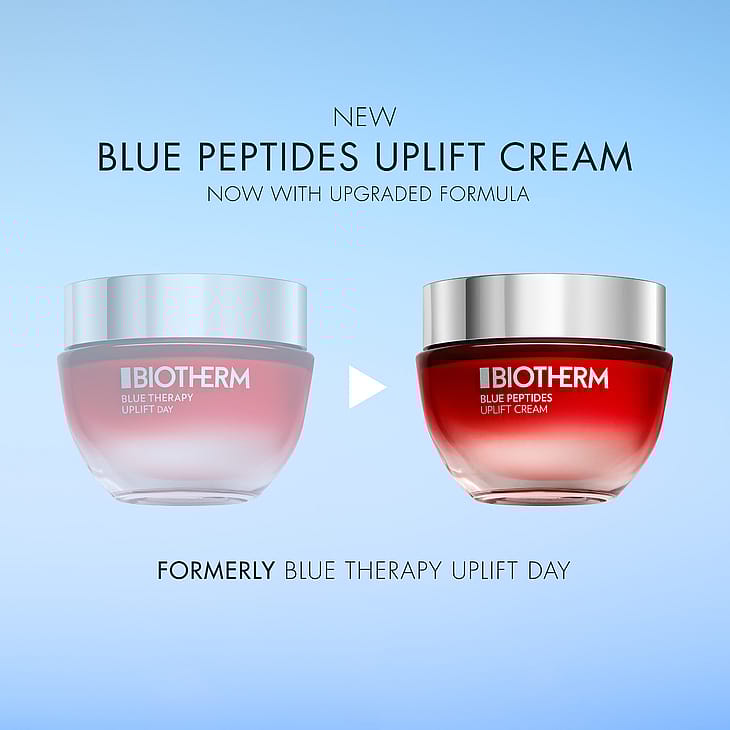 Biotherm Blue Peptides Uplift Cream: Opdag hemmeligheden bag en synligt fastere hud og en strålende glød med Blue Peptides Uplift Cream - et medlem af den nye Blue Peptides hudplejeserie fra Biotherm. Blue Peptides Uplift Cream er en fugtgivende og opstrammende dagcreme til alle hudtyper, også velegnet til sensitiv hud. Ved at omfavne banebrydende biovidenskabelige innovationer kombinerer formlen Biotherms signatur-ingrediens Life Plankton™ med kollagen peptid-fraktioner, som kompenserer for de synlige tegn på kollagentab i huden og bidrager til at bevare en fast og synligt opstrammet hud.
