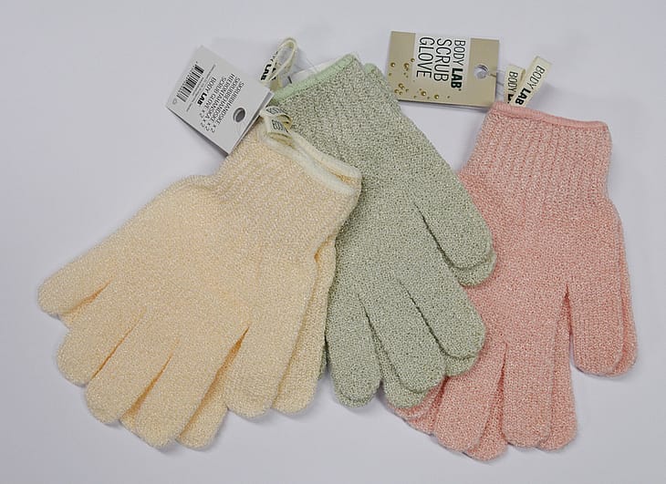 Skrubbehandske du kan anvende i bruse- eller karbadet. Eksfolierer og masserer huden samtidig med, at den sætter gang i blodcirkulationen. Skyl i rent vand efter hver brug, og lad den tørre. Skrubbehandske 2-pak Skrubbehandskerne kommer i tre nuancer, og det er tilfældigt, hvilken en, der fremsendes. Du kan se et billede af farverne nedenfor.