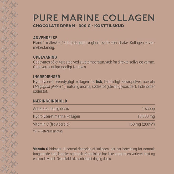 | Hydrolyseret marine kollagen | 10.000 mg | - |
