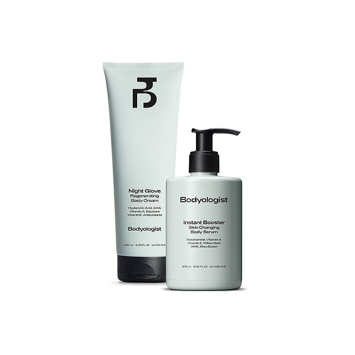 Instant Booster:Instant Booster er et nærende og ekstra plejende kropsserum, der efterlader huden blød og fugtet. Serummet indeholder bl.a. glycerin og sheasmør der blødgører og bevarer den naturlige fugtbalance og elasticitet, A vitamin (retinol) der forfiner tegn på aldring, bidrager til forbedring af hudens struktur og minimerer hyperpigmentering. Niacinamid reducerer Trans Epidermal Water Loss (TEWL) og derved forbedrer hudens evne til at bevare fugt og bidrager til en jævn hudtone samt reducerer rødme. Vitamin E beskytter mod frie radikaler, og pilebarkekstrakt bidrager til øget cellefornyelse. Derudover indeholder dette serum flere naturlige AHA-syrer, der fremmer en glattere, yngre udseende hud ved at stimulere cellefornyelsen.