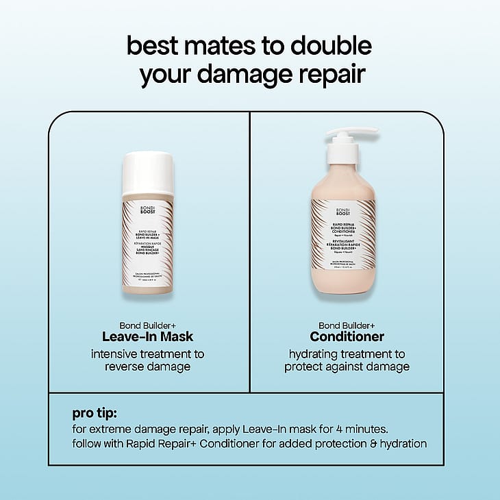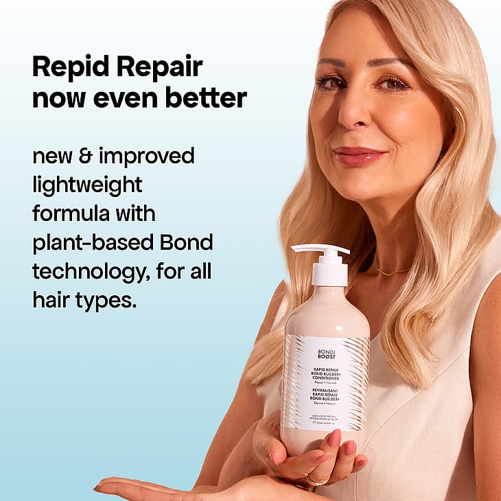 Et SOS til hår i nød, mød vores NYE & FORBEDREDE Rapid Repair Bond Builder+ Conditioner. Vores ikoniske reparerende balsam er blevet opgraderet og indeholder nu plantebaseret bond-teknologi og en lettere formel, der fugter dit hår uden at tynge fint hår. Silikonefri og naturligt tilsat nærende australsk aloe vera og plantebaseret Polycare Split Therapy-teknologi, der reparerer spaltede spidser, så dit hår bliver fugtet, blødere og stærkere!