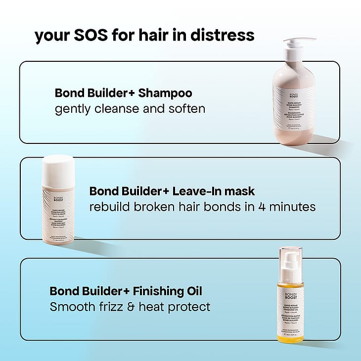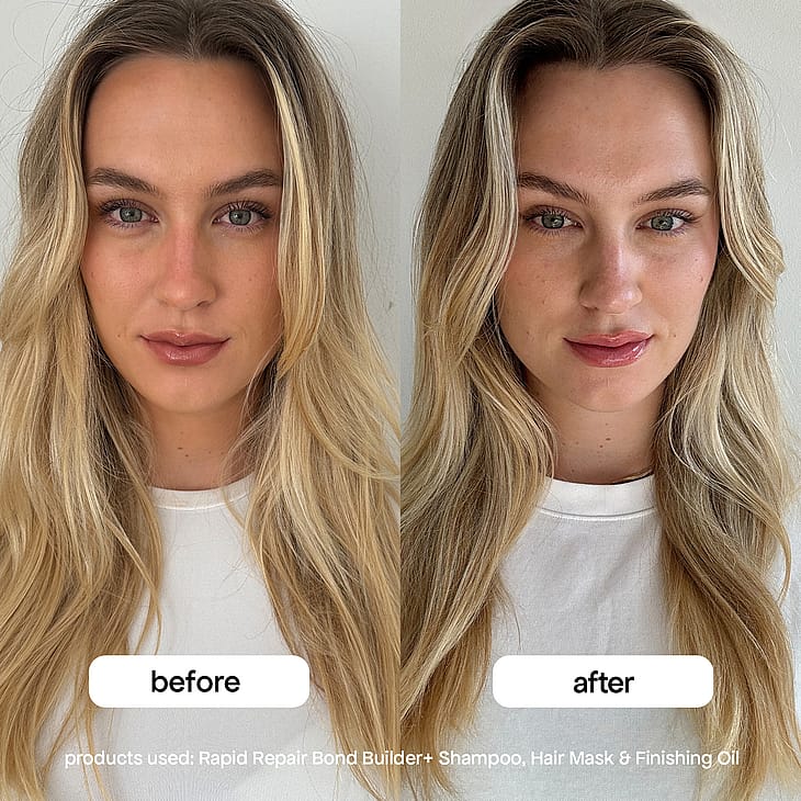 Et SOS til hår i nød – opdag vores NYE & FORBEDREDE Rapid Repair Bond Builder+ Shampoo. Vores ikoniske reparerende shampoo er blevet opgraderet og indeholder nu plantebaseret bond-teknologi, der klinisk reparerer skader og brud. Vi har også opdateret formlen, så den er blevet lettere og giver dit hår den fugt, det har brug for, uden at tynge fint hår. Sulfatfri og naturligt beriget med nærende australsk aloe vera og plantebaseret Polycare Split Therapy-teknologi, der reparerer spaltede spidser og gør dit hår stærkere, mere glansfuldt og sundere!