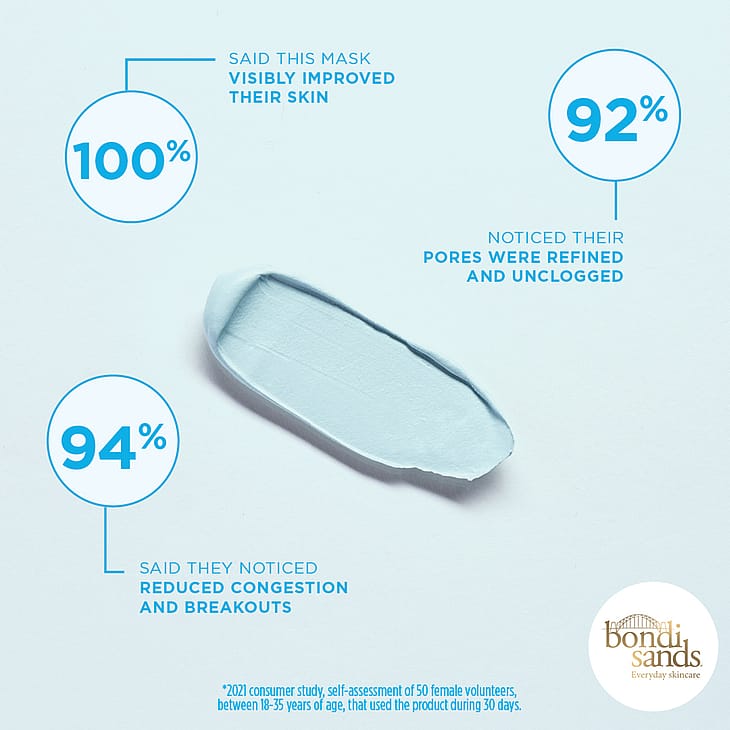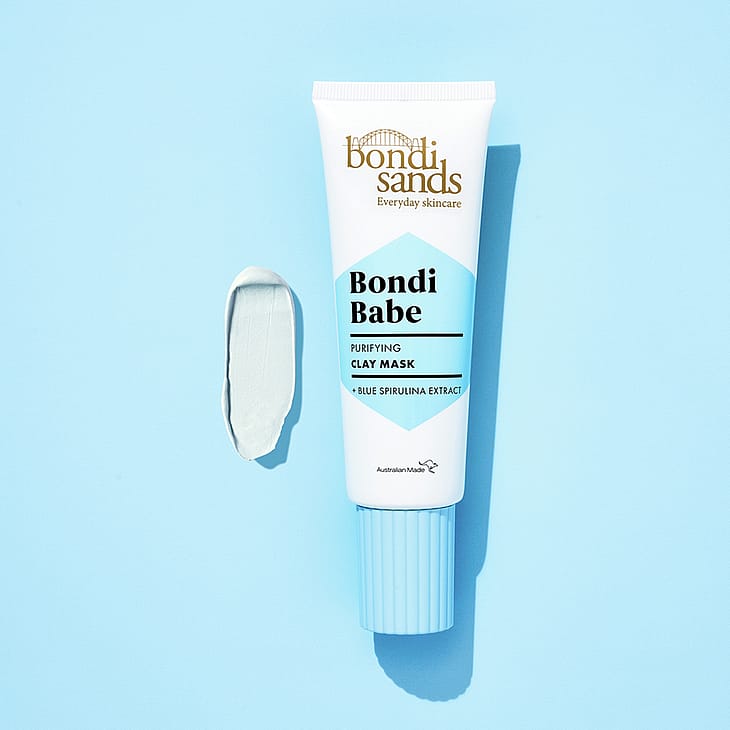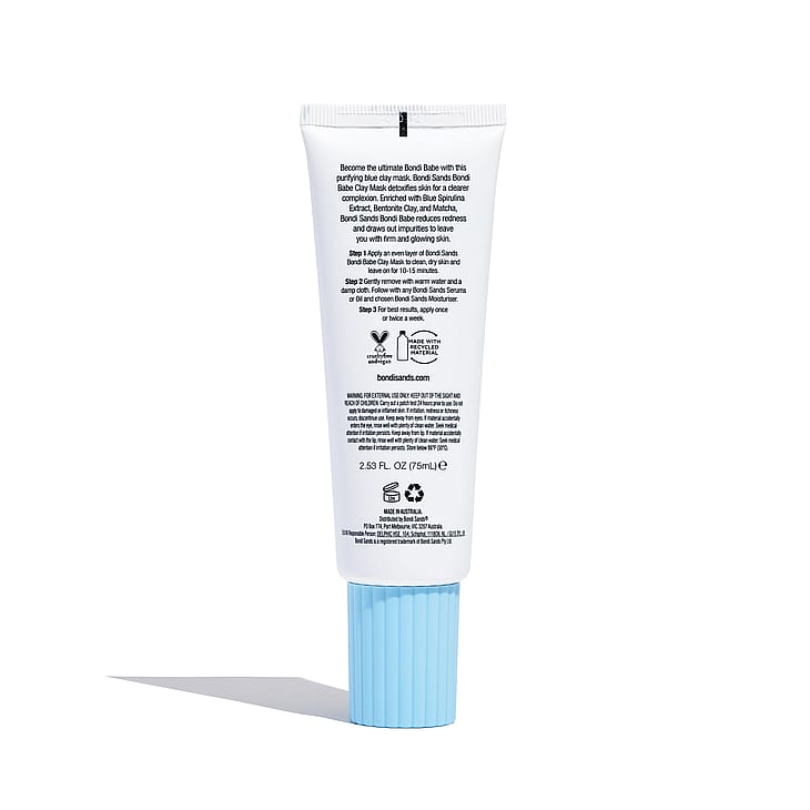 1: Påfør et jævnt lag Bondi Babe Clay Mask på ren og tør hud.