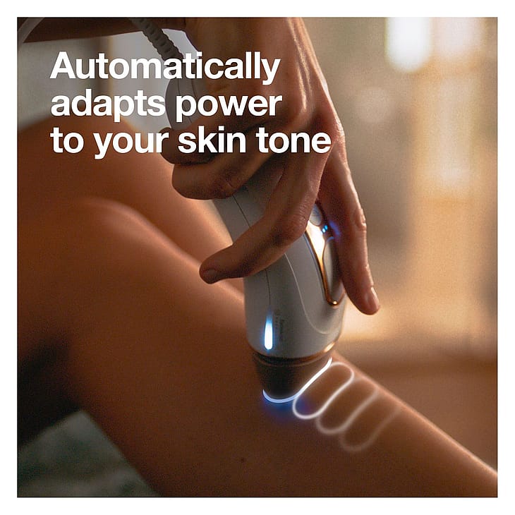 Skin pro 2.0-sensoren (SensoAdapt TM) tilpasser sig automatisk din hudtone og optimerer styrken for at sikre en perfekt balance mellem hurtige resultater og nænsomhed mod huden.