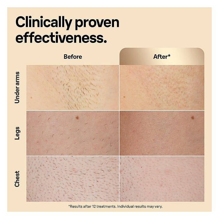 Det er ikke et laserhårfjerningsapparat: den bruger i stedet avanceret IPL-teknologi til at give dig glat hud i 1 år med synlige resultater efter kun 3 uger (Når behandlingsplanen følges. Individuelle resultater kan variere).