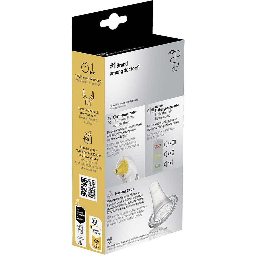 Dette termometer må kun bruges med originale Braun ThermoScan® Hygiene caps til engangsbrug. I pakken er 21 stk. inkluderet.