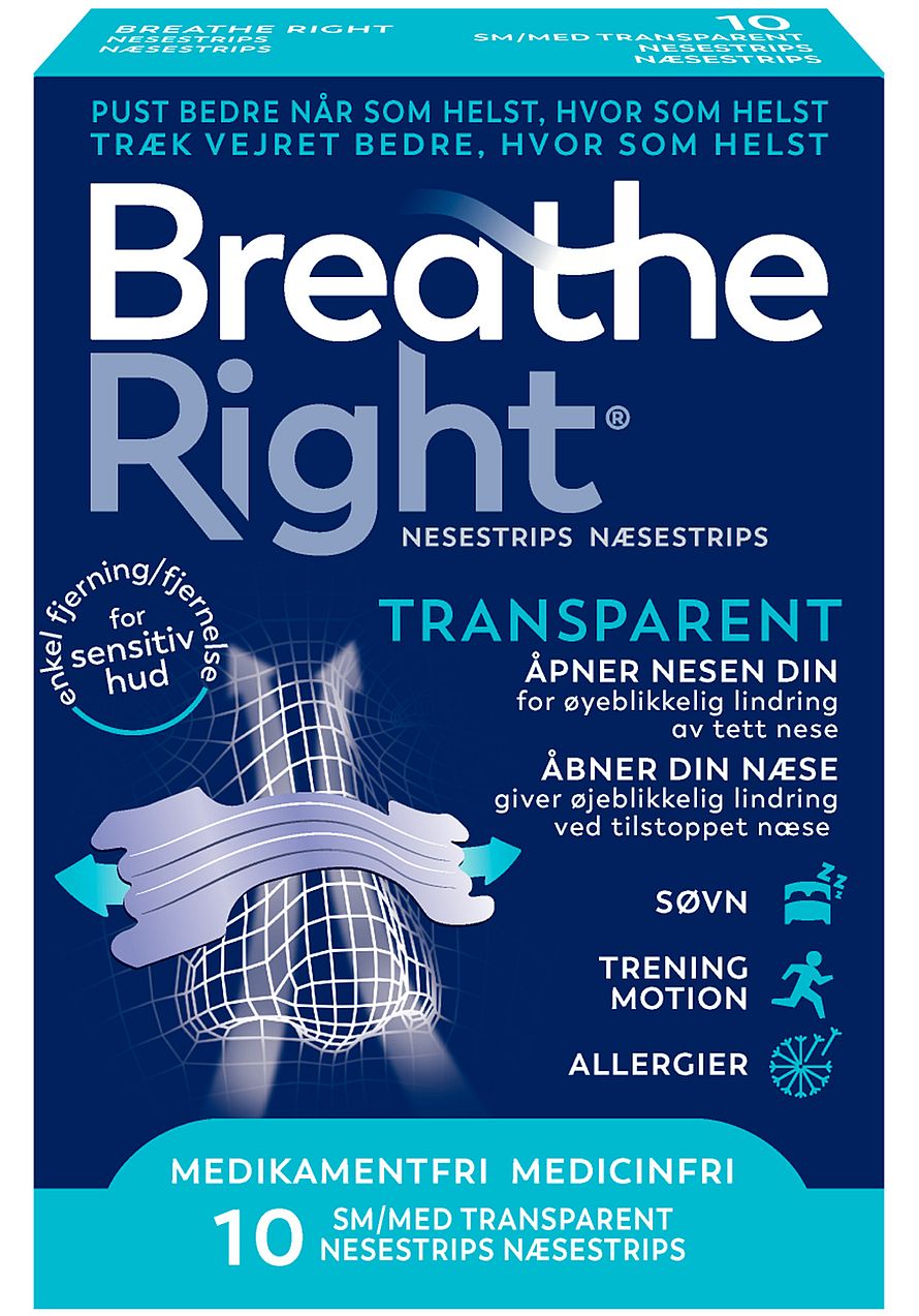 Breathe Right® næsestrips er fleksible, fjederlignende bånd, som skånsomt løfter og åbner næsen, så luften bedre kan passere. Næsestrips bør ikke betragtes som et alternativ til en kirurgisk operation.