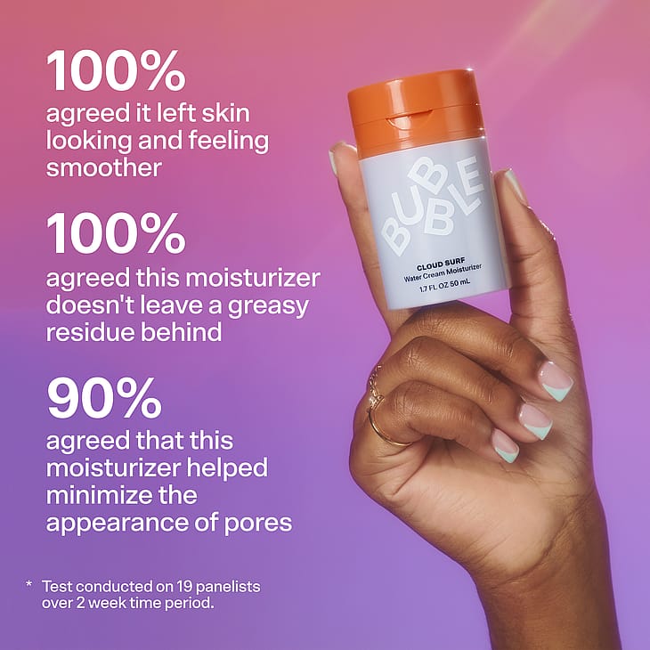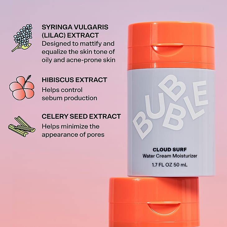 Bubbles Cloud Surf er vandbaseret fugtighedscreme, der er let som luft. Den fugter og afbalancerer normal til kombineret hud uden at føles klistret eller tung.