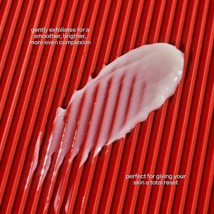Eksfolierende maske med frugtenzymer og AHA for en blødere hud.