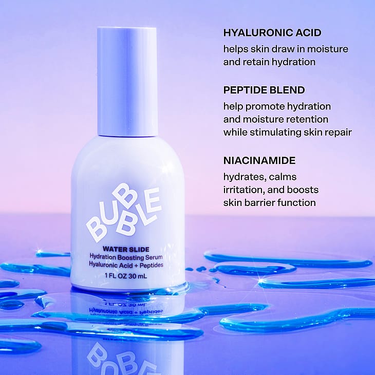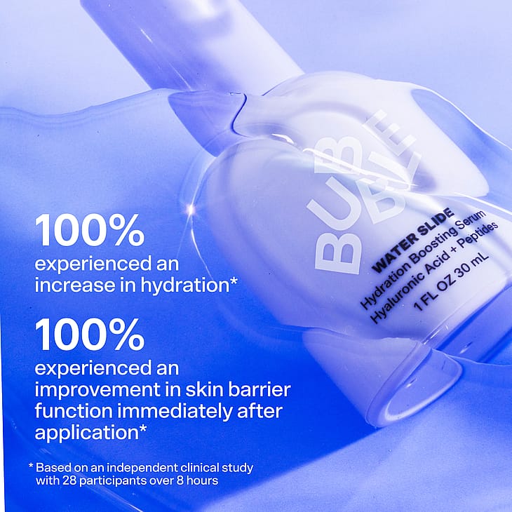 Gør dig klar til at blive fugtet som aldrig før med Bubble Water Slide serum med hydreringsboost samt hyaluronsyre og peptider!