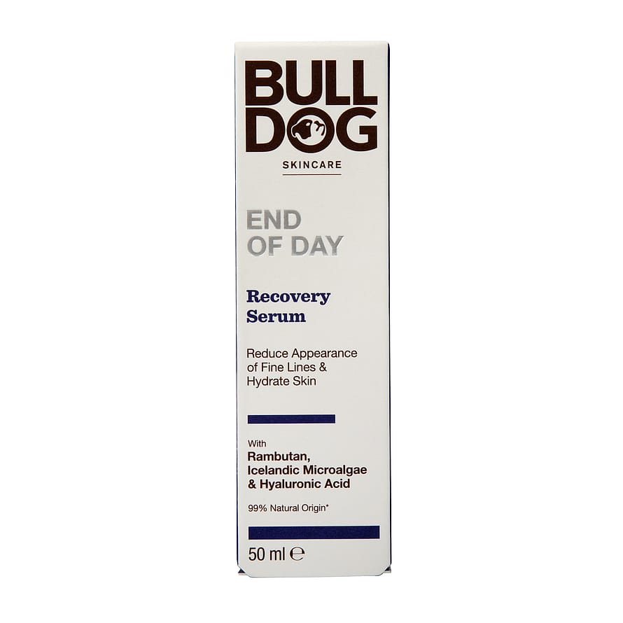 Bulldog End of Day Recovery Serum plejer din hud natten over og er klinisk bevist at reducere synligheden af fine linjer og rynker**. Dette Recovery Serum indeholder en ekspertblanding af naturlige ingredienser for at levere et effektivt serum.