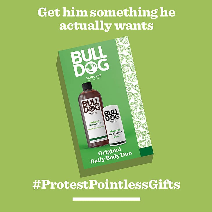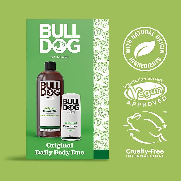 Bulldog Original Body Care Duo. Gaveæske med komplet kropspleje til mænd. Lad Bulldog tage sig af din daglige kropspleje med vores gaveæske, der indeholder vores to topsælgere: Original Shower Gel og Original Deodorant.