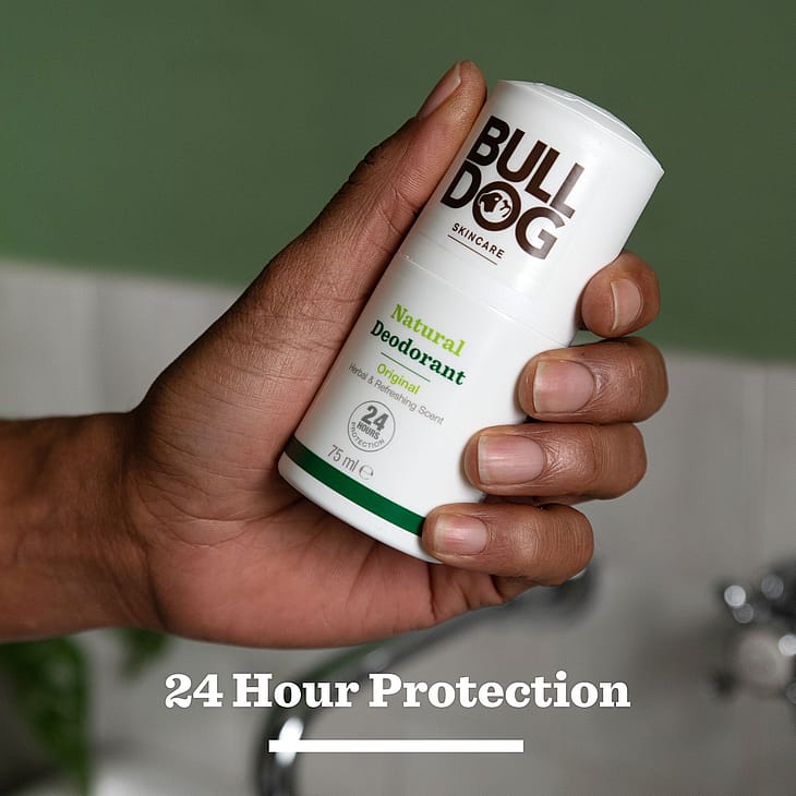 Bulldog Original Deodorant er en skånsom deodorant med naturlige ingredienser til 24 timers effektiv beskyttelse mod dårlig lugt. Den indeholder præbiotisk ekstrakt fra cikorie rod og 100% naturlig duft med friske noter af citron, lime og patchouli.