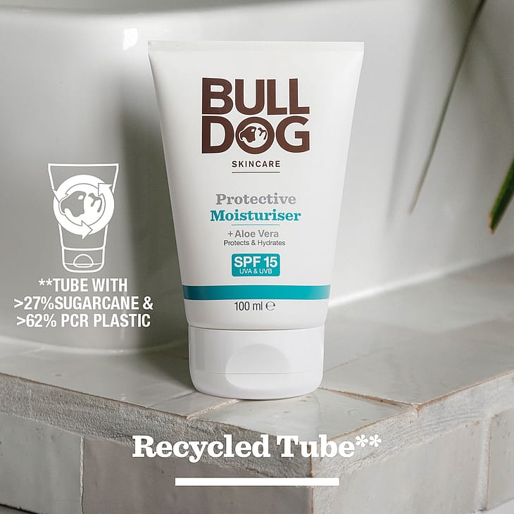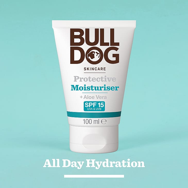 Bulldog Protective Moisturiser SPF 15 er en fugtighedscreme som indeholder naturlige ingredienser og som også beskytter skånsamt din hud mod solens UVA/UVB-stråling.