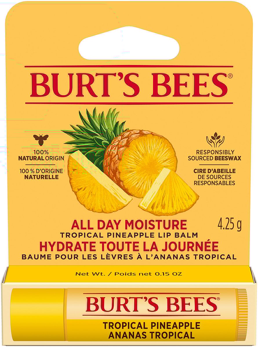 Burt’s Bees® læbepomader er 100% naturlige. Denne læbepomade er beriget med Bivoks, Nærende Olier og Shea Butter, der sørger for at læberne får tilført næring og efterlades bløde og velplejet. Mat finish med en smag af tropisk ananas.