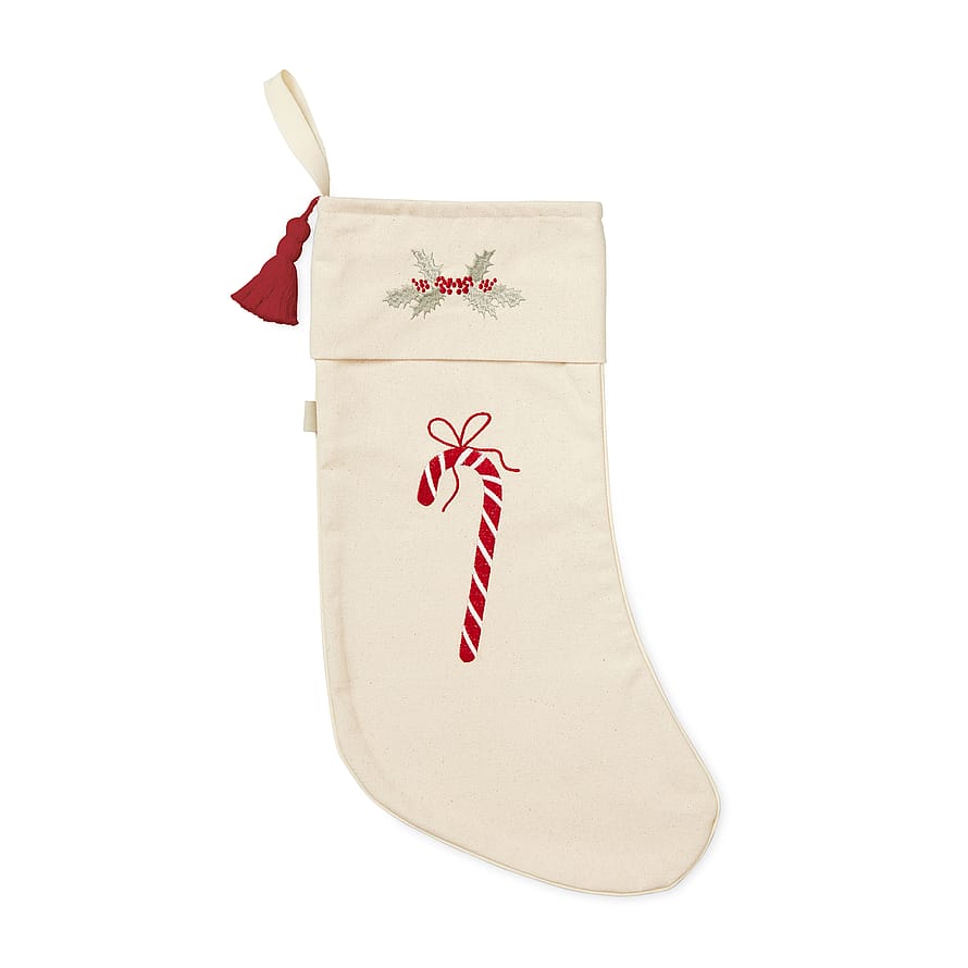 Inviter julens magi indenfor med denne fine julesok. Designet med sirlige applikationer af velkendte og elskede julesymboler, som med sikkerhed vil glæde små hjerter og skabe tidløse familietraditioner. På den ene side af sokken spreder en smuk engel sine vinger, og på den anden tilføjer en klassisk slikstok et strejf af sødme. I toppen hænger en kristtjørn, der inviterer til kærlighed og glæde, ledsaget af en pompom for et strejf af vintage charme. Hæng den ved pejsen, på trappen eller på døren som en uundværlig del af din families juletraditioner. Skattet af store og små, vil sokken sprede julestemning og skabe familieminder, når den tænder forventningens glæde hos glade givere såvel som spændte modtagere.