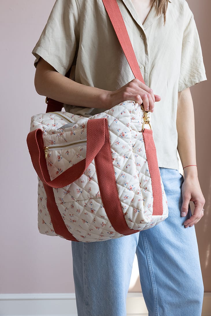 Vores populære og stilfulde quiltede pusletaske er coated både indeni og udenpå, hvilket gør den holdbar, samt vand- og smudsafvisende.