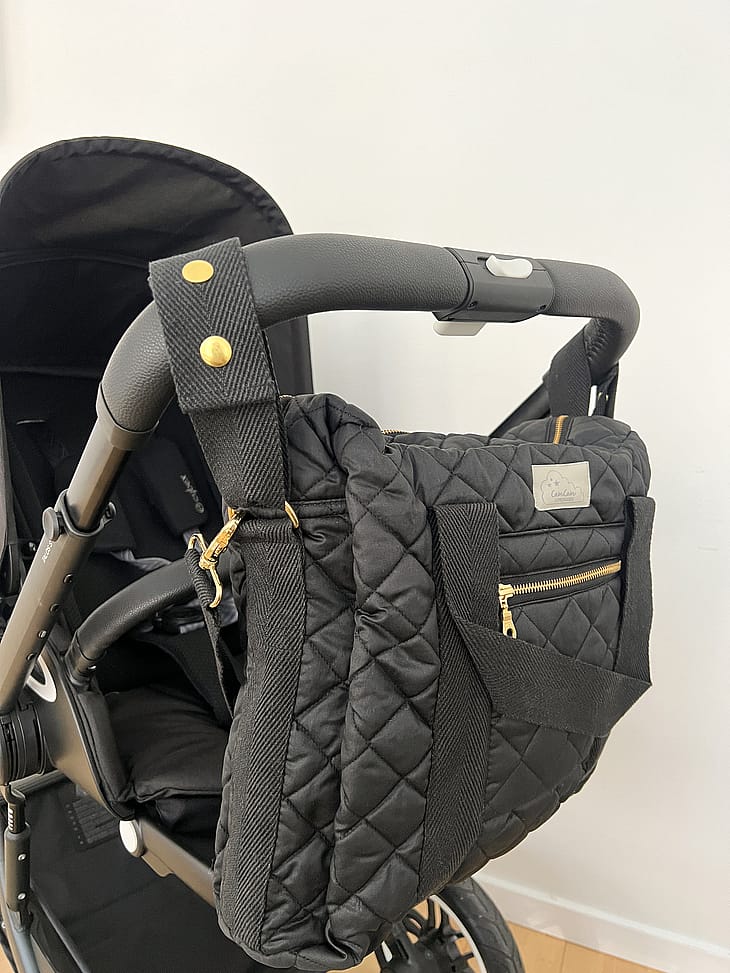 Der medfølger to små stropper, så du kan fastgøre Pusletasken til styret på barnevognen eller klapvognen.