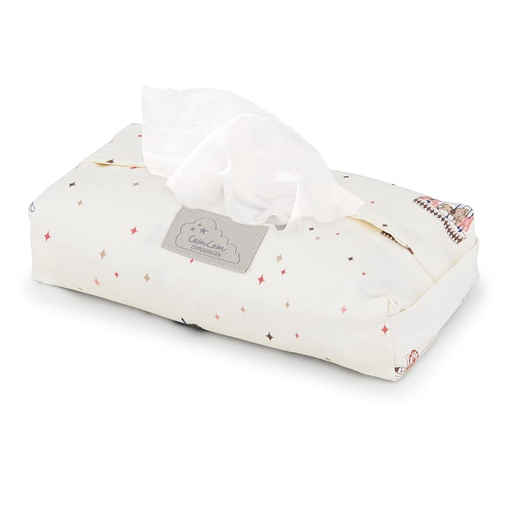 Et smukt og praktisk cover til de uskønne pakker med vådservietter. Etuiet kommer i masser af velkendte Cam Cam print, så du kan matche med f.eks puslepude eller pusletaske. Etuiet matcher de fleste standardpakker med vådservietter, og vil pynte på