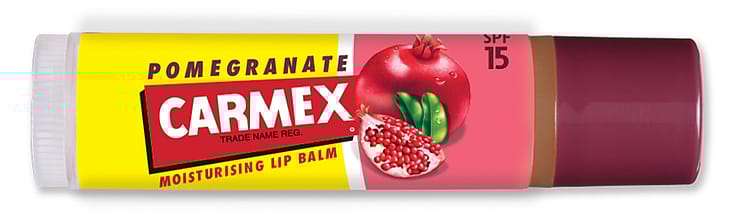 Stik med granatæblesmag - Den originale medicinske læbepomade med SPF 15. Carmex prisvindende læbepomade har en lækker, rig konsistens, der trænger hurtigt ind uden at fedte.