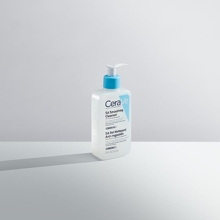 CeraVe SA Smoothing Cleanser renser skånsomt huden, samtidig med at den eksfolierer, udjævner og blødgør tør, grov og nopret hud i ansigtet og på kroppen. Uden at forstyrre den beskyttende hudbarriere.