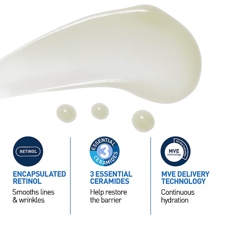 Fugtgivende retinol serum reducerer linjer og rynker.