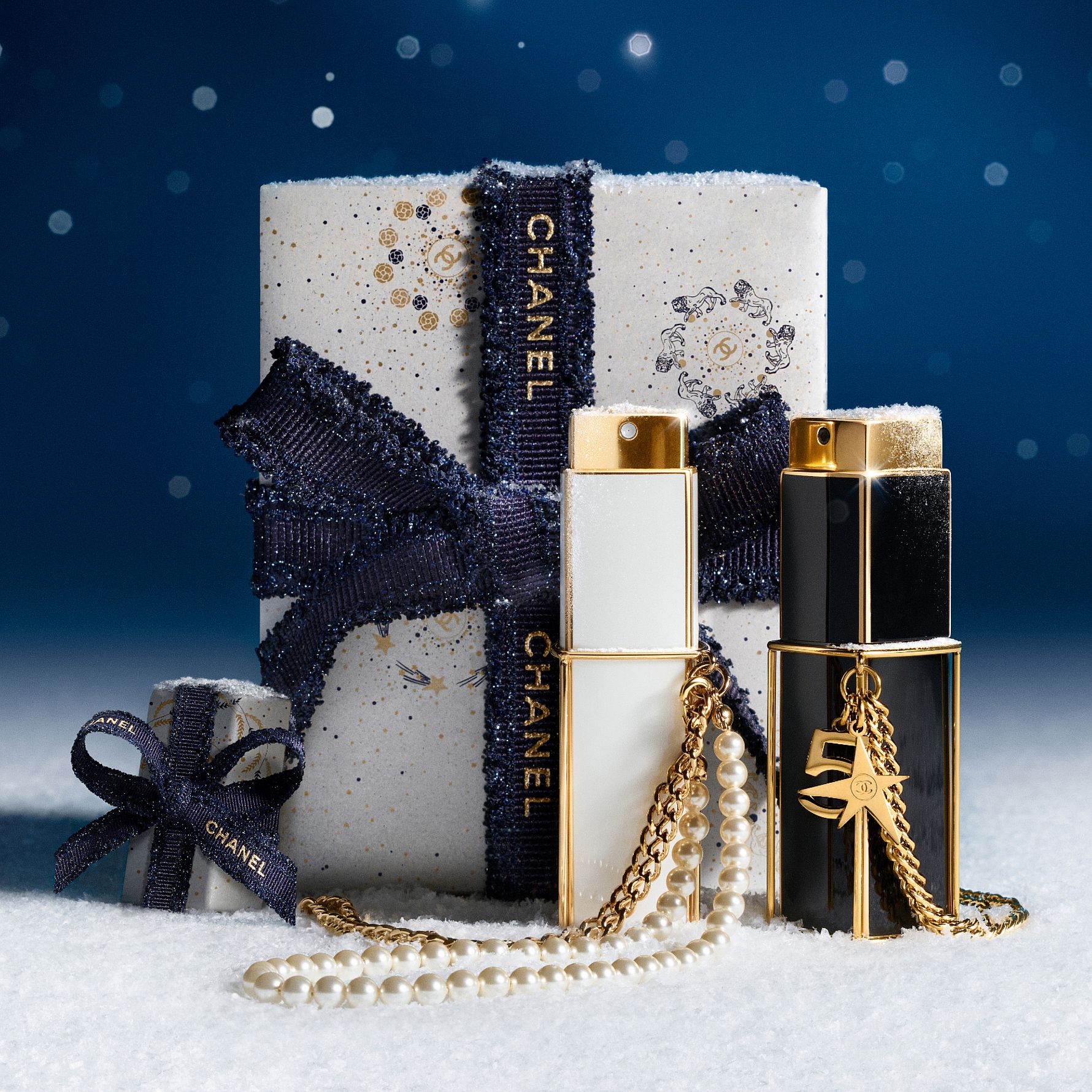 For at fejre højtiden præsenteres COCO MADEMOISELLE Eau de Parfum Intense taskespray som et smykke, der pryder håndleddet. En accessory, der består af en perlekæde og en gylden kæde samt en dobbelt rem, der kan lukkes og åbnes og dermed bruges, når lysten melder sig. Dette format egner sig godt til intuitiv, spontan påføring og er ideelt til at opfriske duftens sensuelle, amberagtige noter eller til at friske din duft op i løbet af dagen.