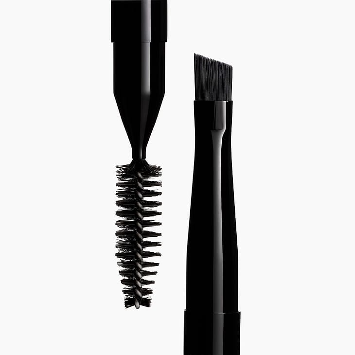 Den PINCEAU DUO SOURCILS er beregnet til at tæmme, udfylde og optegne brynlinjen. Et vigtigt redskab til at fremhæve personligheden i øjnene og gøre noget ekstra ud af øjenbrynenes form: Børsteenden tæmmer dem og den skrå pensel fylder dem ud og optegner dem med brynpudder.