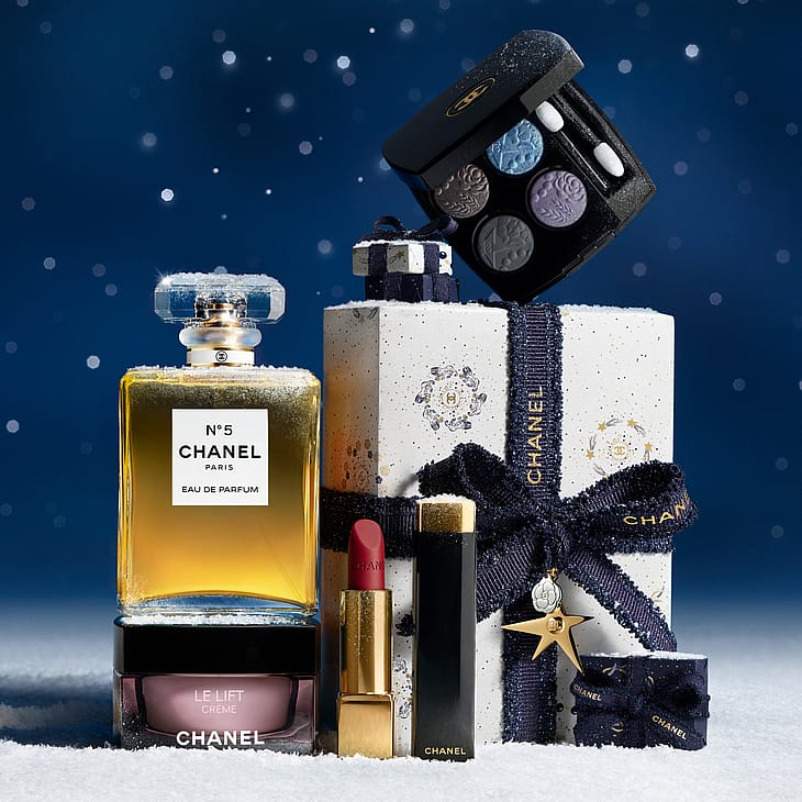 Til HOLIDAY 2025-kollektionen designede CHANEL Makeup Creation Studio og COMÈTES COLLECTIVE-medlem Cécile Paravina en farvepalette inspireret af kosmos, hvor fem CHANEL-symboler bevæger sig i kredsløb.