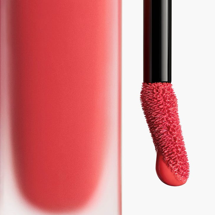 ROUGE ALLURE LIQUID VELVET, den nye, intenst matte, flydende læbestift fra CHANEL, med slørende og udglattende effekt, er ultra holdbar og behagelig. En holdbar, mat, flydende læbestift, der giver op til 12 timers* intens farve. En fugtgivende og beskyttende formel med second skin-effekt, der er nem at påføre: Læberne er smidige og behagelige allerede efter første lag og forbliver glatte hele dagen igennem. 15 intenst pigmenterede nuancer: fra en subtil nude til en selvsikker lilla over en dyb rød farve. Højkoncentrerede pigmenter afsløres takket være en dispergeringsolie af naturlig oprindelse, der giver en mere intens farve. Den ultra-fine applikator sikrer en præcis og ensartet påføring af læbestiften. * Klinisk evaluering udført på et panel med 22 frivillige. Brug den flade side af applikatoren, og læg farven i midten af læberne, for at opnå perfekt definerede læber. Brug derefter spidsen af applikatoren til at tegne amorbuen og mundvigene op. For et endnu mere præcist omrids anbefales det at starte med en streg af LE CRAYON LÈVRES i samme farve før ROUGE ALLURE LIQUID VELVET.