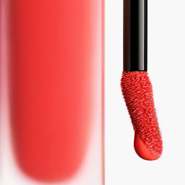 ROUGE ALLURE LIQUID VELVET, den nye, intenst matte, flydende læbestift fra CHANEL, med slørende og udglattende effekt, er ultra holdbar og behagelig. En holdbar, mat, flydende læbestift, der giver op til 12 timers* intens farve. En fugtgivende og beskyttende formel med second skin-effekt, der er nem at påføre: Læberne er smidige og behagelige allerede efter første lag og forbliver glatte hele dagen igennem. 15 intenst pigmenterede nuancer: fra en subtil nude til en selvsikker lilla over en dyb rød farve. Højkoncentrerede pigmenter afsløres takket være en dispergeringsolie af naturlig oprindelse, der giver en mere intens farve. Den ultra-fine applikator sikrer en præcis og ensartet påføring af læbestiften. * Klinisk evaluering udført på et panel med 22 frivillige. Brug den flade side af applikatoren, og læg farven i midten af læberne, for at opnå perfekt definerede læber. Brug derefter spidsen af applikatoren til at tegne amorbuen og mundvigene op. For et endnu mere præcist omrids anbefales det at starte med en streg af LE CRAYON LÈVRES i samme farve før ROUGE ALLURE LIQUID VELVET.