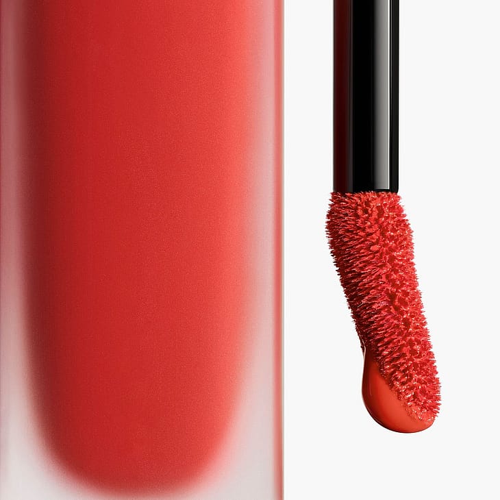 ROUGE ALLURE LIQUID VELVET, den nye, intenst matte, flydende læbestift fra CHANEL, med slørende og udglattende effekt, er ultra holdbar og behagelig. En holdbar, mat, flydende læbestift, der giver op til 12 timers* intens farve. En fugtgivende og beskyttende formel med second skin-effekt, der er nem at påføre: Læberne er smidige og behagelige allerede efter første lag og forbliver glatte hele dagen igennem. 15 intenst pigmenterede nuancer: fra en subtil nude til en selvsikker lilla over en dyb rød farve. Højkoncentrerede pigmenter afsløres takket være en dispergeringsolie af naturlig oprindelse, der giver en mere intens farve. Den ultra-fine applikator sikrer en præcis og ensartet påføring af læbestiften. * Klinisk evaluering udført på et panel med 22 frivillige. Brug den flade side af applikatoren, og læg farven i midten af læberne, for at opnå perfekt definerede læber. Brug derefter spidsen af applikatoren til at tegne amorbuen og mundvigene op. For et endnu mere præcist omrids anbefales det at starte med en streg af LE CRAYON LÈVRES i samme farve før ROUGE ALLURE LIQUID VELVET.