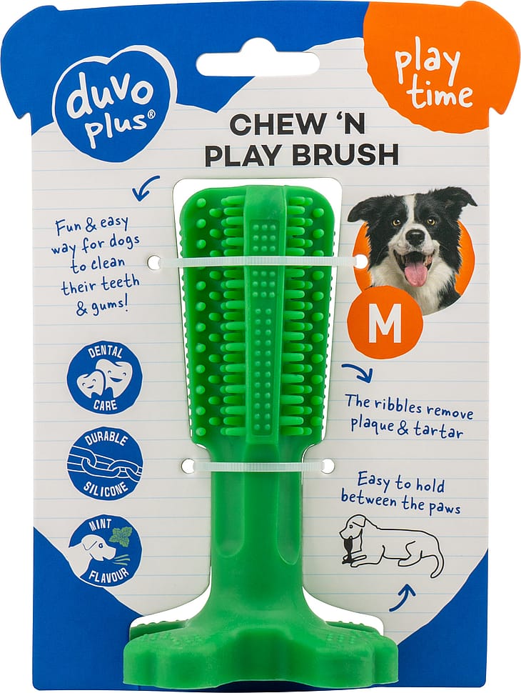 Med Duvo chew ´n play-børsten behøver du ikke gøre en indsats for at rense din hunds tænder.