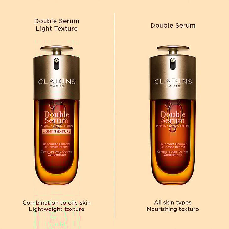 Inspireret af videnskaben om epigenetik genopfinder Clarins, Double Serum Light Texture med sin nye generation af dobbeltformler, der er velegnet til kombineret til fedtet hud.