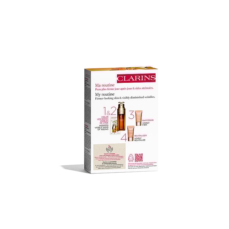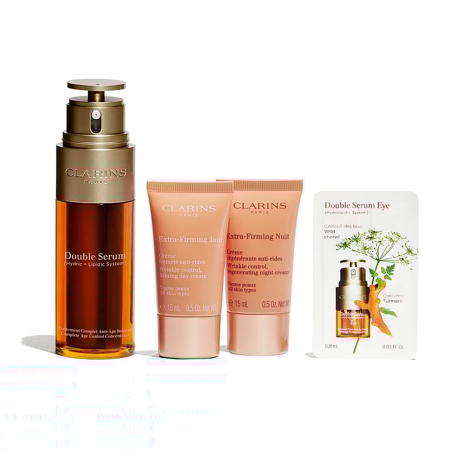 Extra-Firming Day & Night-duoen, der indeholder ekstrakt af regenererende kængurublomst, der strammer huden op og giver den fylde, mindsker forekomsten af rynker og har en øjeblikkelig beroligende effekt. Teinten bliver mere ensartet, og huden får et smukt skær.
