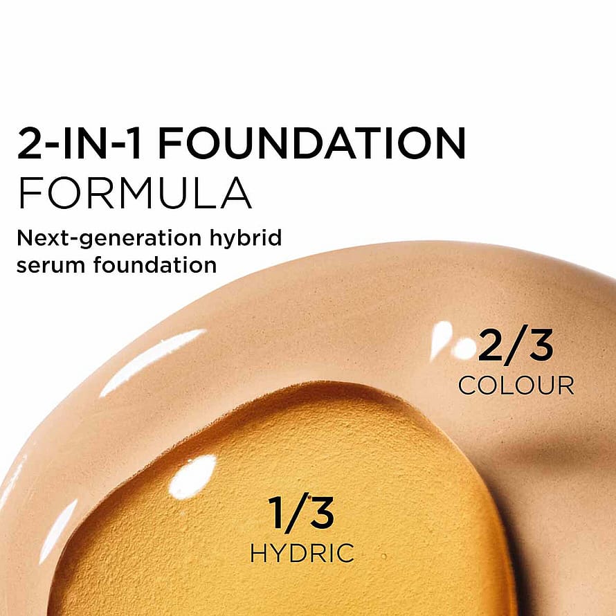 En næste generations hybrid-serum-foundation, hvis banebrydende fusion af makeup og hudpleje tilbyder et nyt niveau af ungdommelig glød. Takket være dens justerbare drejeknap giver den vægtløs, tilpasselig, medium-til-fuld dækning med en strålende, satin, ikke-fedtet finish i 37 nuancer til alle hudtyper og hudtoner.