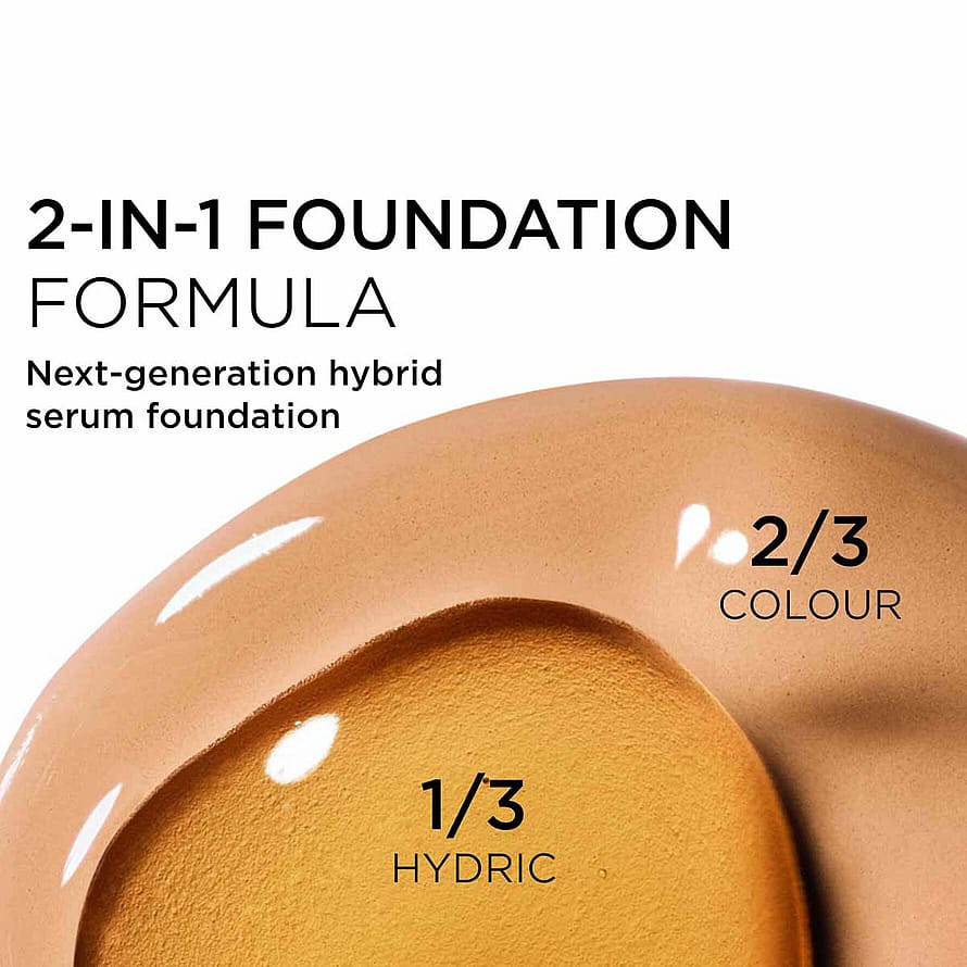 En næste generations hybrid-serum-foundation, hvis banebrydende fusion af makeup og hudpleje tilbyder et nyt niveau af ungdommelig glød. Takket være dens justerbare drejeknap giver den vægtløs, tilpasselig, medium-til-fuld dækning med en strålende, satin, ikke-fedtet finish i 37 nuancer til alle hudtyper og hudtoner.
