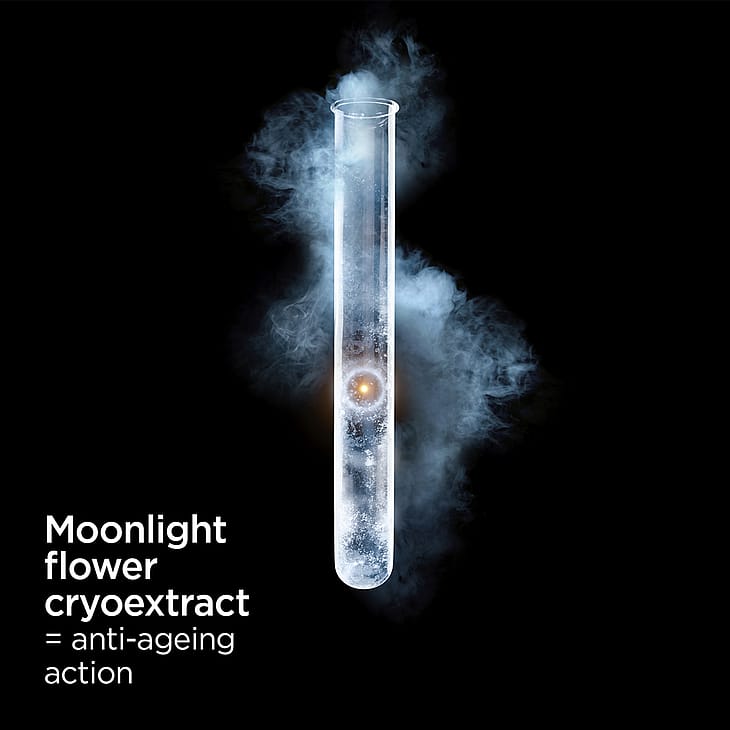 Genaktiverer hudens ungdommelighed med Moonlight Flower-ekstraktet. En ultra dyrebar essens, som udvindes gennem en unik kryoekstraktionsprocedure ved -196 °C, for at bevare dens unikke egenskaber.