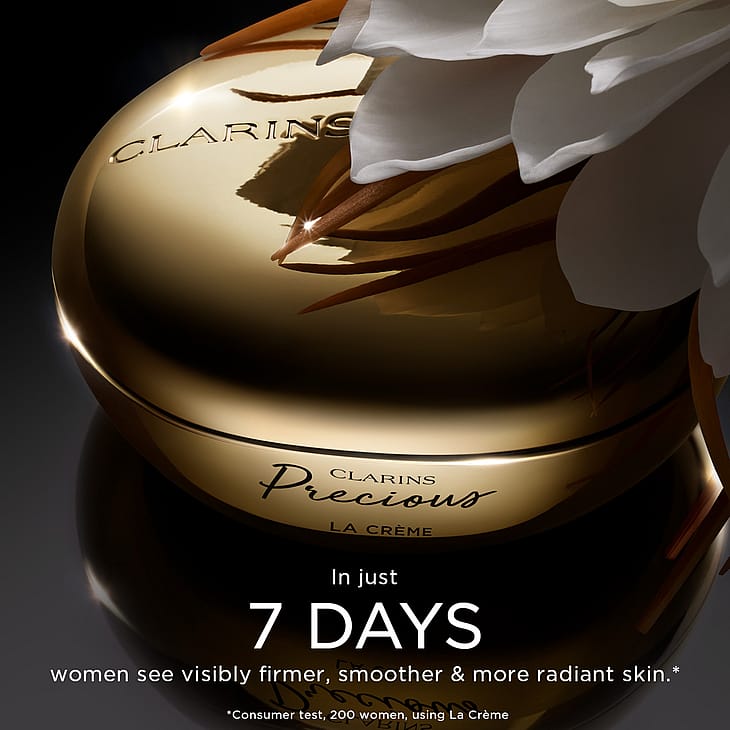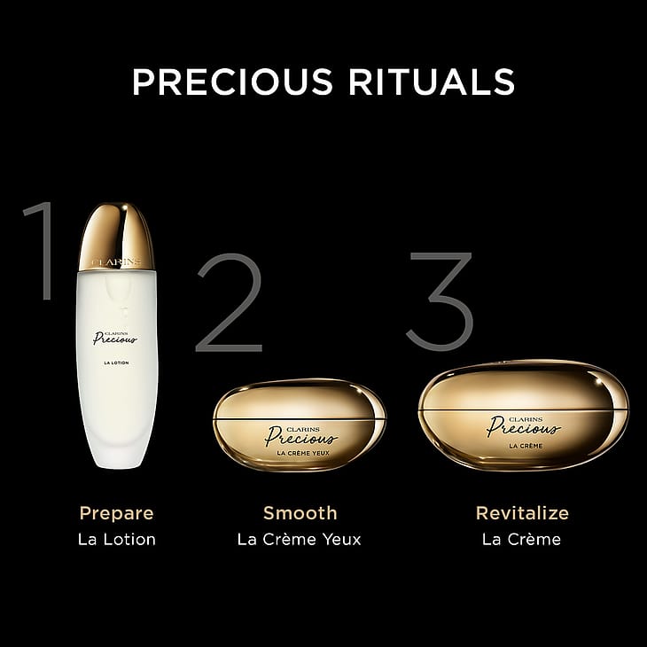 Clarins Precious er en exceptionel hudplejeserie, som er 100% fransk og 100% Clarins: den indeholder den sjældne blomst nattens dronning, der vokser i Bretagne, en unik, aktiv ingrediens, der forarbejdes i Sydfrankrig, og en duft, der skabes i Grasse, samt sofistikeret emballage, der designes i Paris.