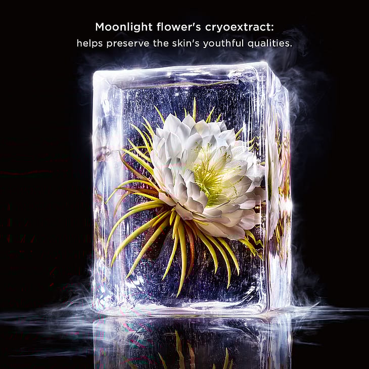 Innovation: Clarins Laboratories har afkodet en sjælden blomsts hemmelighed bag ungdom: Nattens dronning Takket være cryo-udvindelsesprocessen opnås det dyrebare cryo-ekstrakt af nattens dronning, som medvirker til, at huden ser yngre ud, er mere modstandsdygtig og har et bedre skær.