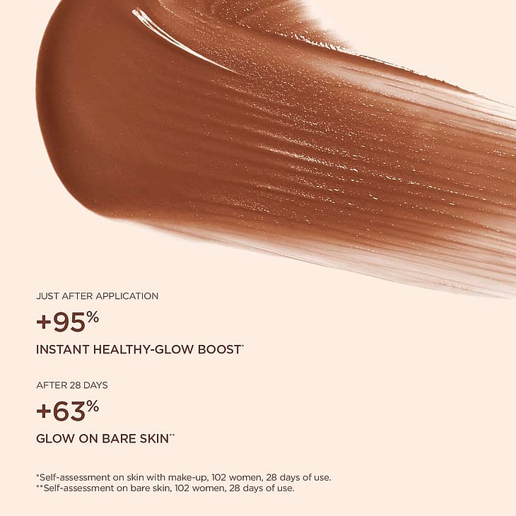 Takket være dens dobbelte makeup- og hudplejeevne udjævner den subtilt din teint og genopretter gløden, mens dens formel hjælper med at booste hudens udstråling for en uovertruffen glød med eller uden makeup!