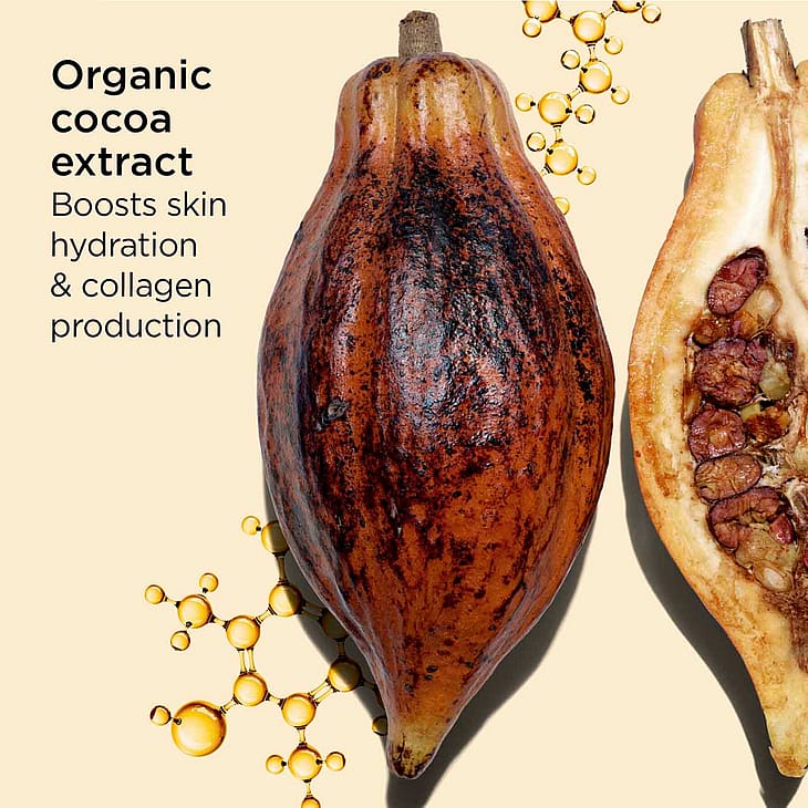 - Består af en kraftfuld duo af økologisk kakaoekstrakt og vitaminderivat.