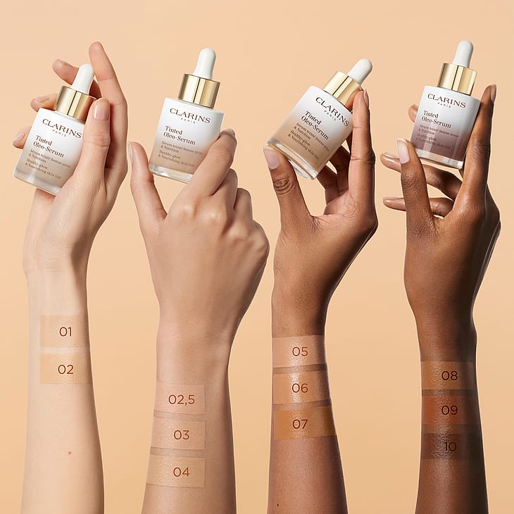 Clarins første farvede hudplejeserum kombinerer unikke mineralpigmenter med kraften fra nærende tørplanteolier: hasselnøddeolie og økologisk jojobaolie.