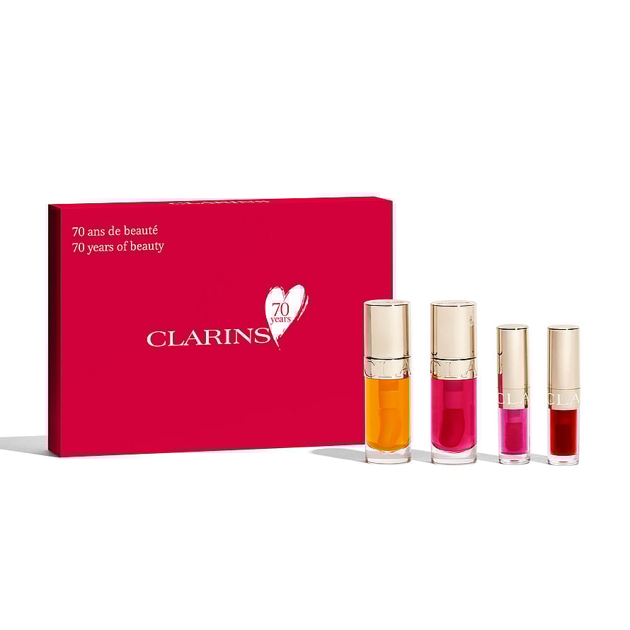 Olier har været kernen i Clarins' ekspertise, lige siden mærket blev grundlagt: Oprindeligt blev de kun brugt til at fugte, nære og opstramme ansigtet og/eller kroppen, men nu fås de også til læberne. Lip Comfort Oils plejer og forbedrer læberne takket være kraften i de planteolier, de indeholder. Dette særlige sæt, der er skabt for at fejre mærkets 70-års jubilæum, indeholder 4 forskellige nuancer, der passer til dit humør og outfit.Værdi: 522 kr.01 Honey, 7 ml04 Pitaya, 7 ml 02 Raspberry, 1,5 ml 08 Strawberry, 1,5 ml
