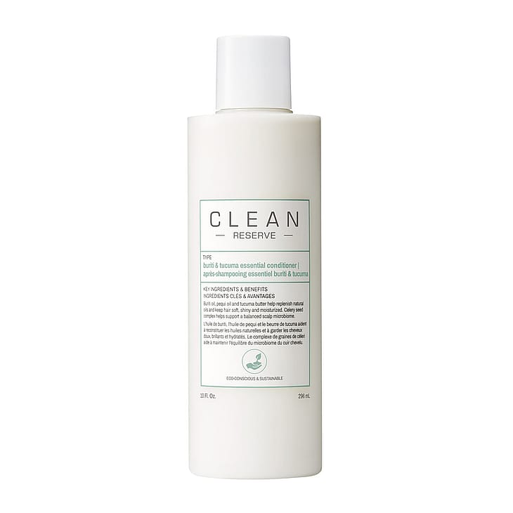 CLEAN RESERVE Buriti & Tucuma Essential Conditioner er en balsam, der fugter håret og gør det nemmere at rede ud.