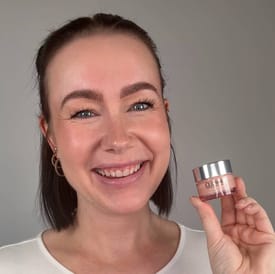 Brug kun en smule af produktet, og dup det forsigtigt omkring øjnene med ringfingeren.