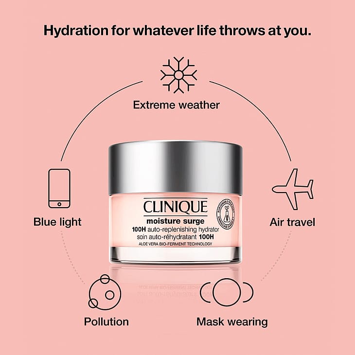 Moisture Surge 100-Hour Moisturizer Face Cream er en oliefri gelcreme, der er en opgradering af den kendte og elskede Moisture Surge, som er en af Cliniques absolutte bestsellere. Beriget med eksklusiv aloe bio-ferment og hyaluronsyre, trænger denne fugtighedscreme dybt ind i hudens overflade for intens fugt, der varer i op til 100 timer - selv efter ansigtsvask.