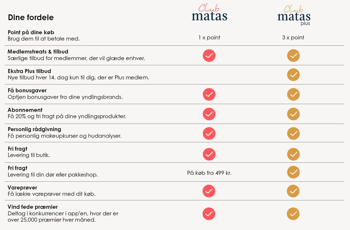 Spar flere penge med Club Matas Plus – en opgradering til Club Matas med fri fragt til døren, ekstra tilbud hver 14. dag og 3 x point på dine køb, hver gang du shopper hos Matas.