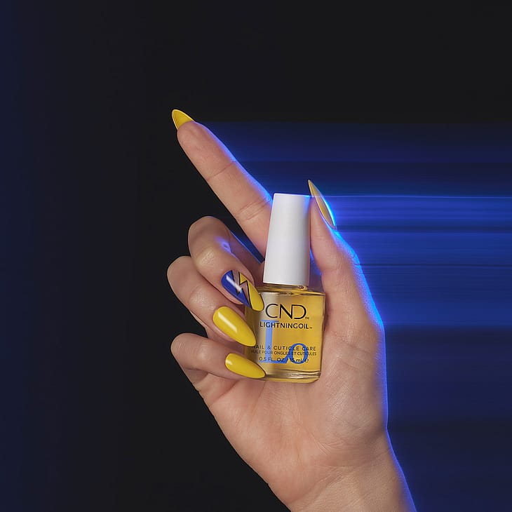 Hvorfor vælge LightningOil - Øjeblikkelig absorption med ultralet, mat og tør finish - Fugter og styrker for at forebygge neglebrud og give fleksibilitet - Plejer neglebånd, blødgør og nærer for sund vækst - Vegansk formel baseret på planteingredienser - Kompatibel med alle CND behandlinger, farver og forstærkninger